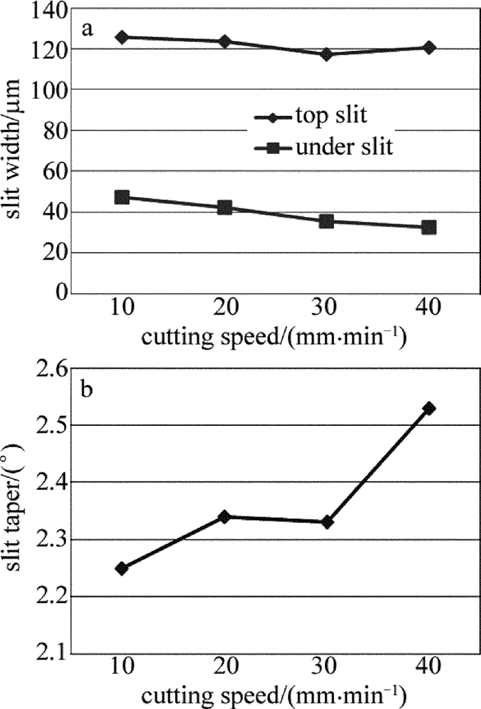 Figure 4. Slit width and slit taper with the change of cutting speed