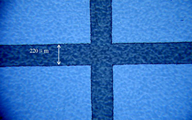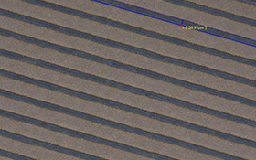 玻璃/薄膜表面氧化銦錫(ITO),銀漿(Ag)、碳納米管(CNT)、石墨烯、納米銀、鉬鋁鉬、銅、高分子導電膜、鋁薄膜、PERC、鈣鈦礦電池、FTO、TCO、碳粉等涂層材料的超細線寬激光蝕刻。